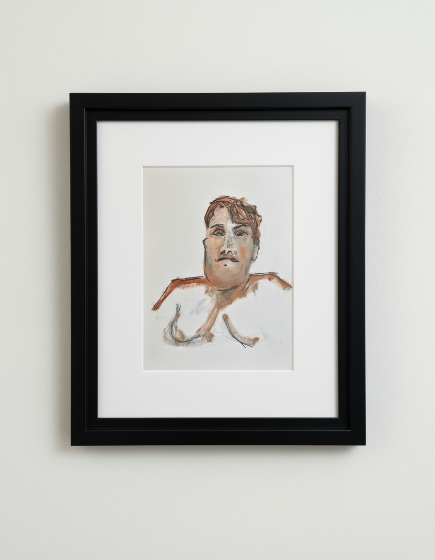 Original artwork: figure looking ahead. oil and charcoal on paper. 11" x 14". Available in black frame, ash frame, or unframed. Free UK shipping.