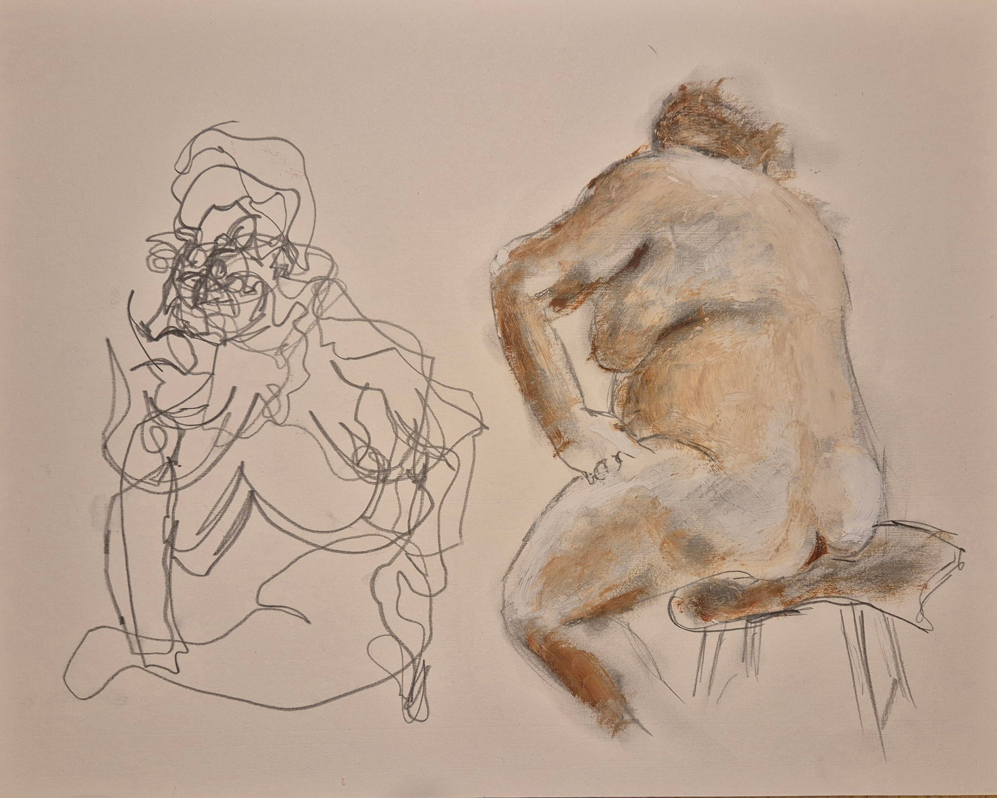 Original artwork: figure and abstract I. oil and charcoal on paper. 11" x 14". Available in black frame, ash frame, or unframed. From £299.00. Free UK shipping.